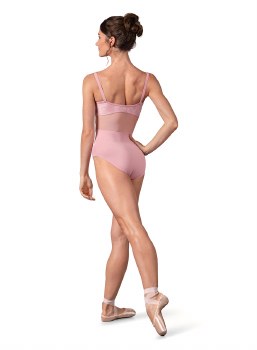 Mesh Back Tank Leotard with Embossed Floral Contrast Detail Fabric: Main: 78% Polyester, 22% Elastane Contrast 1: 78% Polyester, 22% Elastane Emboss Contrast 2: 90% Nylon, 10% Elastane Mesh