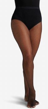 Capezio® Adult Studio Basic Fishnet Tight 83% Nylon, 17% Spandex Plush elastic waistband Does not have a solid foot pad Also available in child sizes Hand wash cold, hang dry