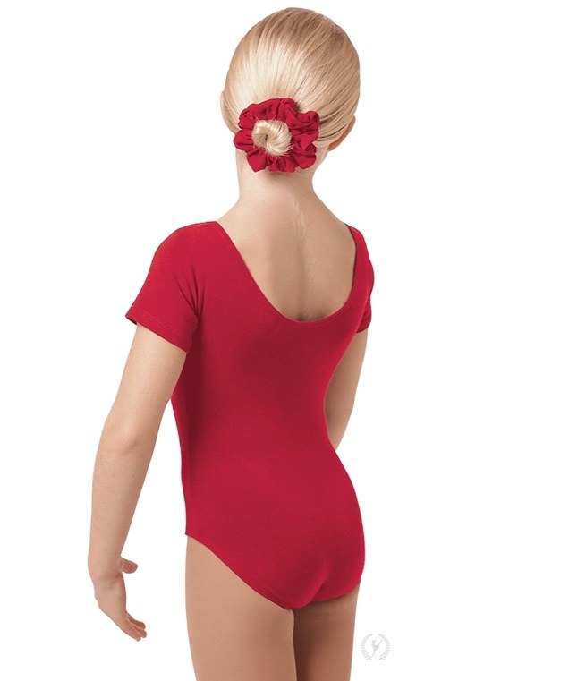 This essential dance leotard features a moderate scoop neck, scoop back, and short sleeves. Made with high quality Cotton Lycra®, our short sleeve leotard is not only super soft, but also incredibly durable; the strong fibers maintain their original color, fit, and feel, even after repeated wash and wear. Eurotard's signature full front, quick-dry, and antimicrobial lining adds coverage, wicks away moisture, and protects against odors.