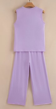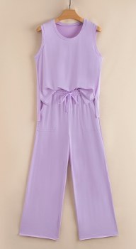 Versatile 2pcs set includes a sleeveless top and matching pants. Breathable cotton fabric blend made for utmost comfort and stretch. Fabric: 65% Polyester, 30% Cotton, 5% Elastane