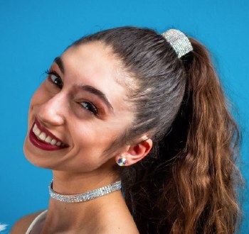 The Wide Cuff Ponytail Elastic Band shimmers with hundreds of tiny rhinestones. Accommodates any size ponytail for a dazzling effect. Invisible-set princess-cut rhinestones