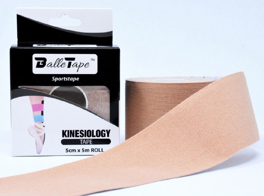 BalleTape is our name for kinesiology tape. It is used to support muscles and help with pain relief and recovery. It is the same material, the same width, and uses the same peel and stick adhesive as another well-known tape. However, our tape is on a continuous roll, allowing the user to cut the length of tape they actually need rather than being forced to use pre-cut strips. BalleTape is available in 4 colors.